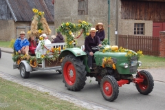 Der 25.08.2018 war der Tag, an dem das diesjährige Erntefest in Kieve stattfand. Und es war auch der Tag in diesem sehr trockenen Sommer, wo es endlich einmal etwas regnete. Doch das war für die Kiever kein Problem. Der traditionelle Umzug fand noch bei trockenem Wetter statt und erst beim Mittag wurde das Essen mit Tisch- und Banktransporten rein und raus aus der Scheune sehr dynamisch und wirkte sich auflockernd aus. Die Kiever zeigten hier deutlich, wie unkompliziert ein Problem gelöst und zu einer netten Situation verwandelt werden kann.