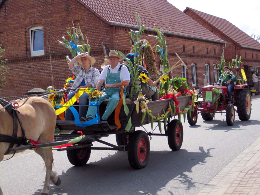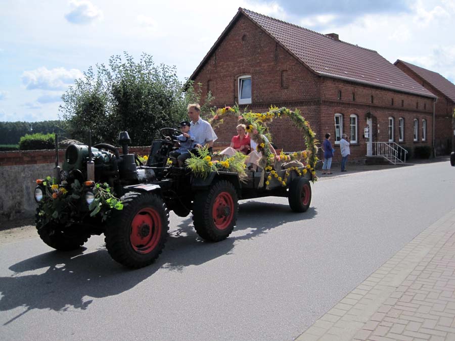 Am 22. August 2009 war es mal wieder so weit – die Kiever feierten zusammen mit ihren Gästen von nah und fern ihr jährliches Erntefest. Das Wetter spielte mit und die Sonne schicke angenehme Temperaturen vom Himmel. Die Blaskapelle aus Röbel führte traditionsgemäß den Umzug der festlich geschmückten Erntewagen an.